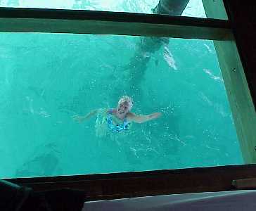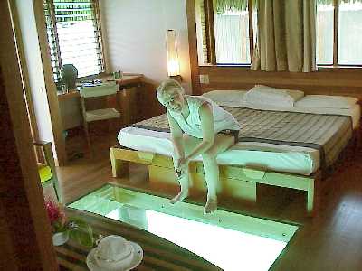 | The bungalow has a glass floor and Jan enjoyed watching the fish swimming underneath. |