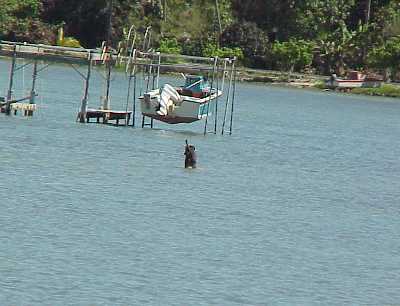Our guide pointed out one of the "fishing dogs" who have learned to catch fish out in the shallow lagoon. He claimed that because they can feed themselves this way, there are as many dogs as people on Bora Bora. (The population is just over 6000 people.) |
